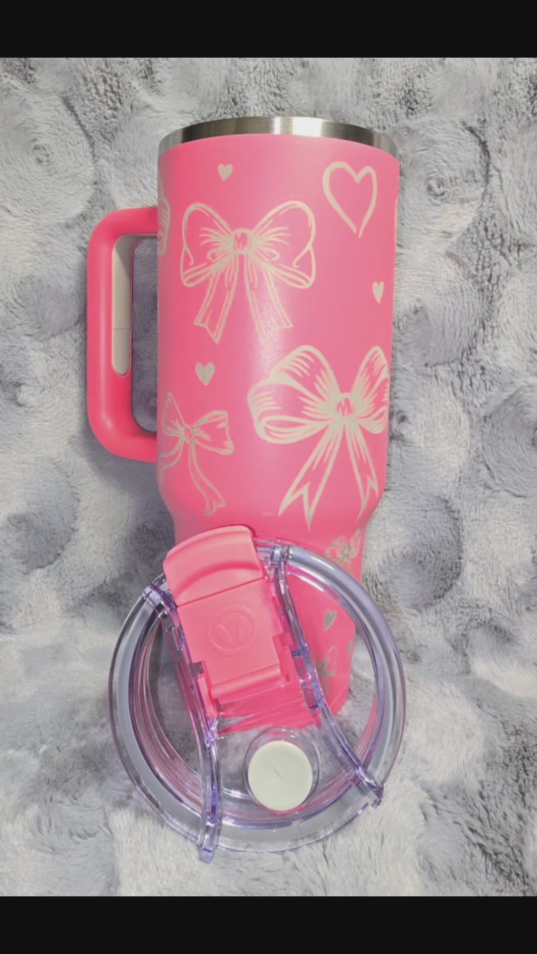 Our 40oz laser-engraved tumbler features custom bow and heart designs that elevate everyday hydration. The package includes a reliable lid and dual straws—hot pink and clear—for versatile use. Engineered to maintain beverage temperatures effectively, this tumbler performs equally well with hot or cold drinks, making it an ideal companion for any occasion.